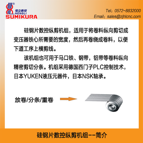 用 途 | 用于硅鋼片、帶鋼、鋁帶等金屬薄板卷料縱向精密剪切分條。 | ||||